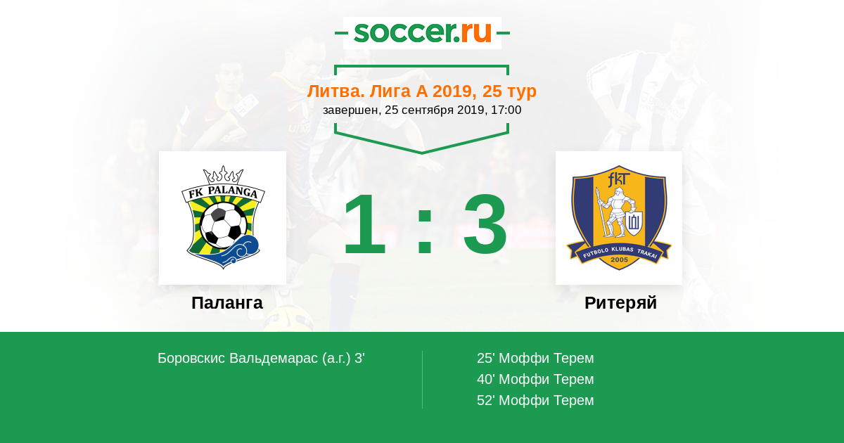 Паланга - Ритеряй: обзор матча 25 сентября 2019