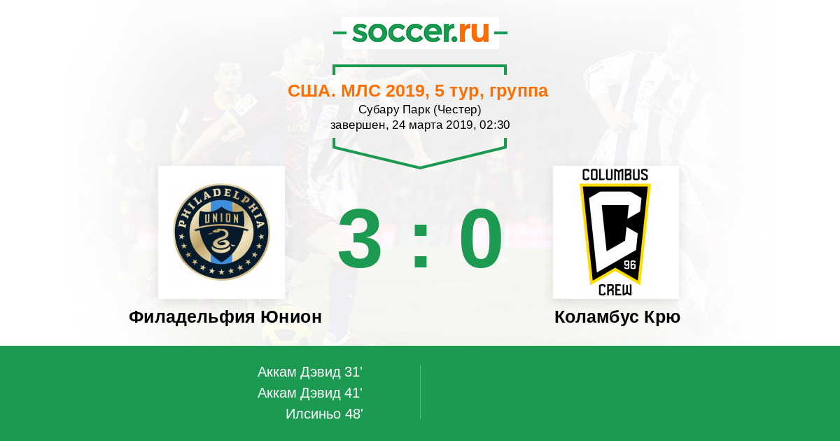 Филадельфия Юнион - Коламбус Крю: обзор матча 24 марта 2019