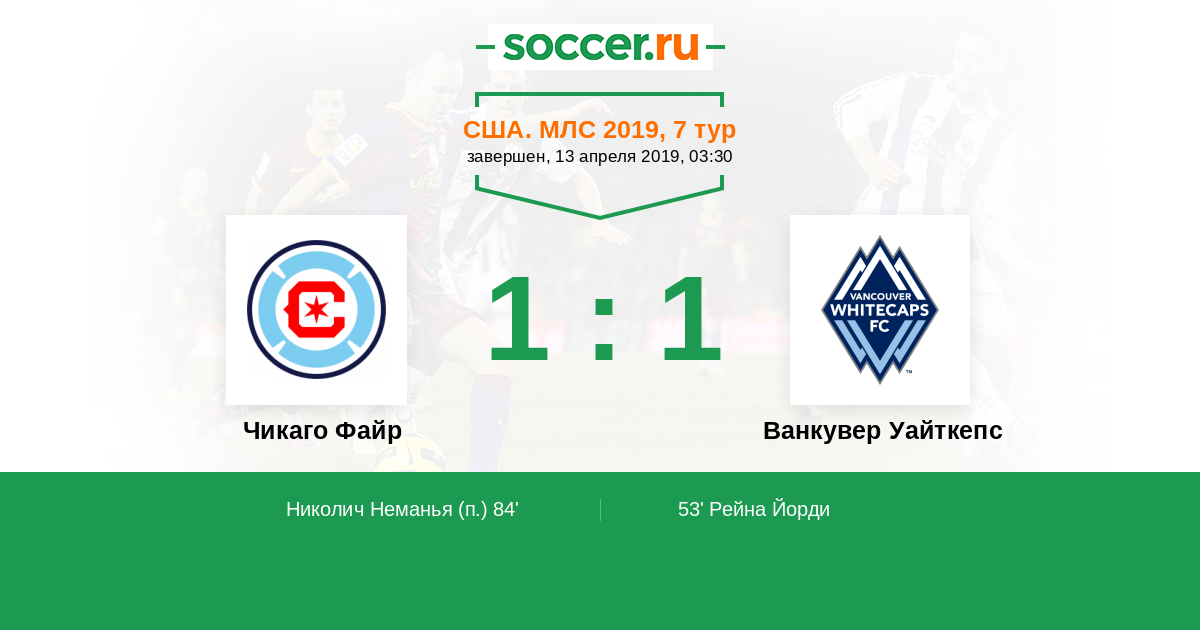 Чикаго Файр - Ванкувер Уайткепс: обзор матча 13 апреля 2019