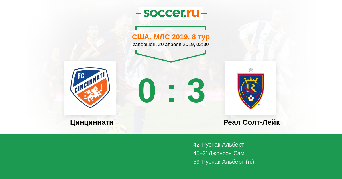 Цинциннати - Реал Солт-Лейк: обзор матча 20 апреля 2019