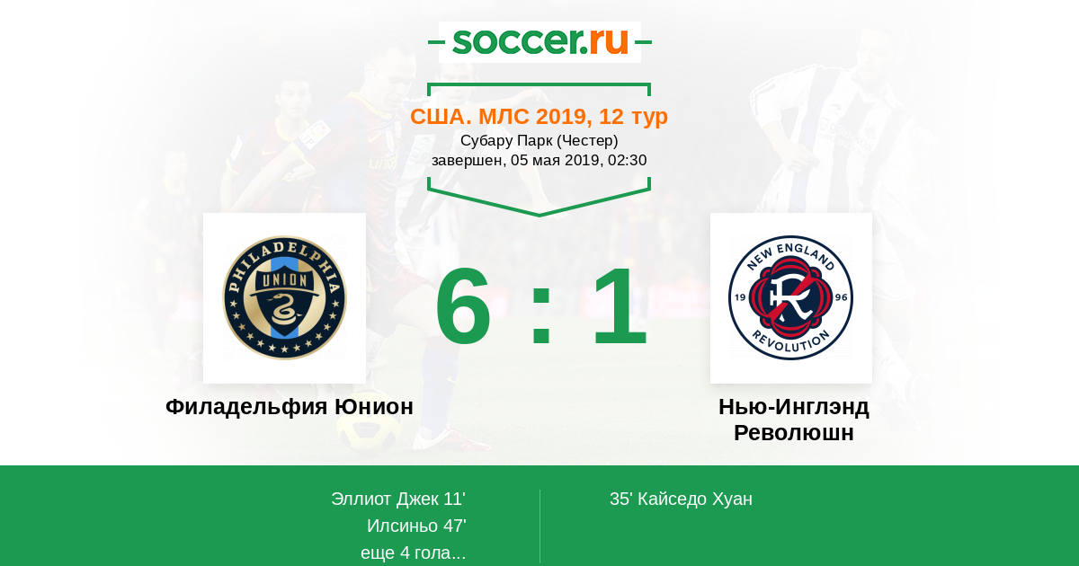 Филадельфия Юнион - Нью-Инглэнд Революшн: обзор матча 5 мая 2019