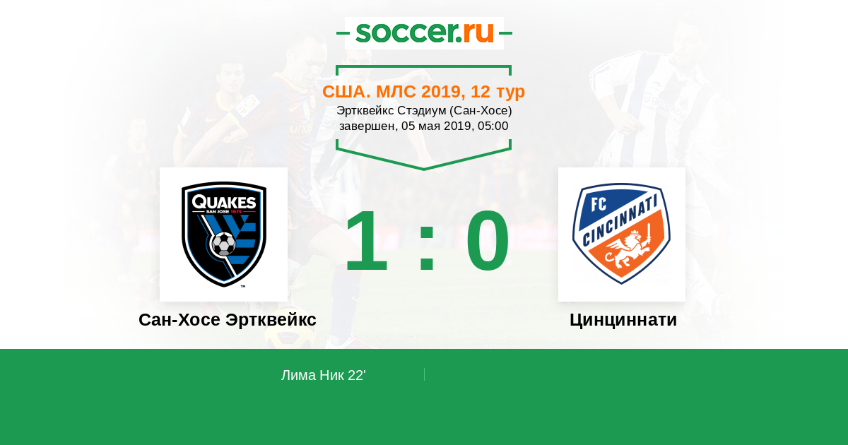 Сан-Хосе Эртквейкс - Цинциннати: обзор матча 5 мая 2019