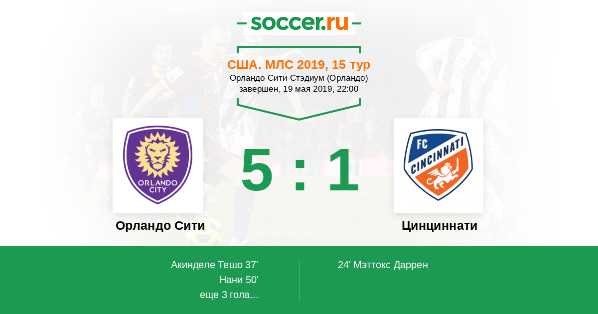 Орландо Сити - Цинциннати: обзор матча 19 мая 2019