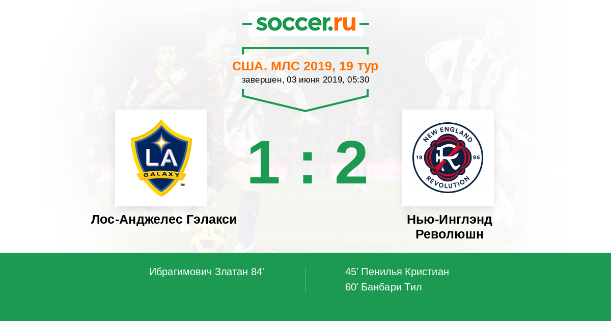 Лос-Анджелес Гэлакси - Нью-Инглэнд Революшн: обзор матча 3 июня 2019