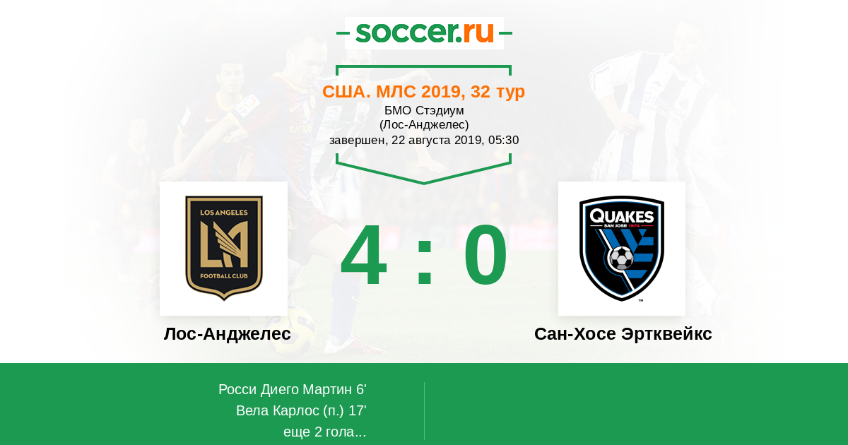 Лос-Анджелес - Сан-Хосе Эртквейкс: обзор матча 22 августа 2019