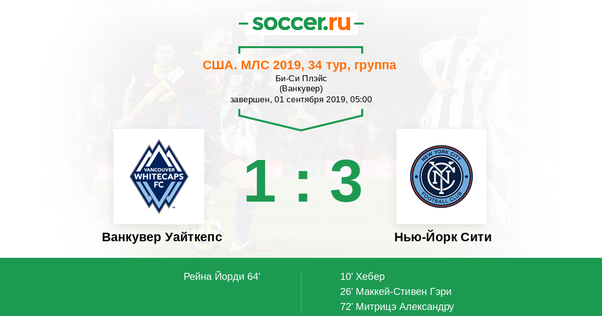 Ванкувер Уайткепс - Нью-Йорк Сити: обзор матча 1 сентября 2019