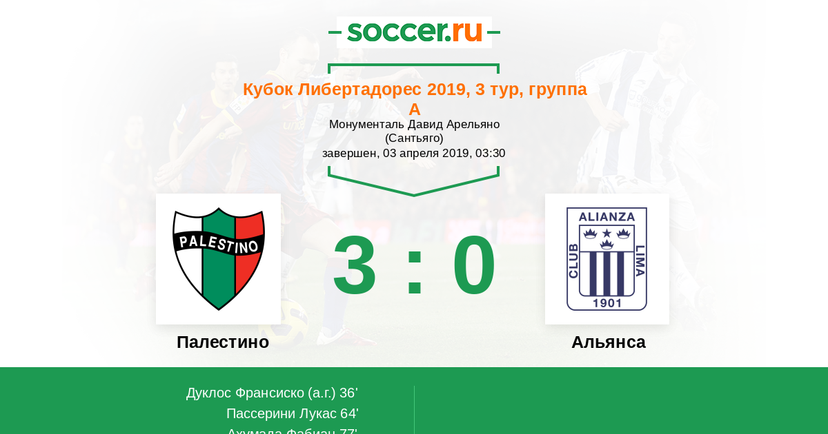 Палестино - Альянса: обзор матча 3 апреля 2019