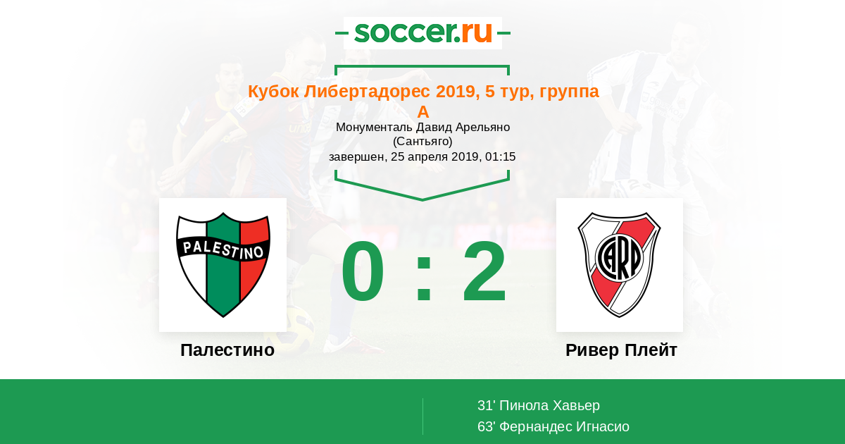 Палестино - Ривер Плейт: обзор матча 25 апреля 2019