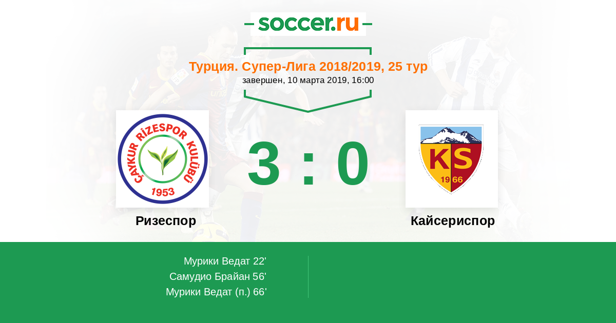 Ризеспор - Кайсериспор: обзор матча 10 марта 2019