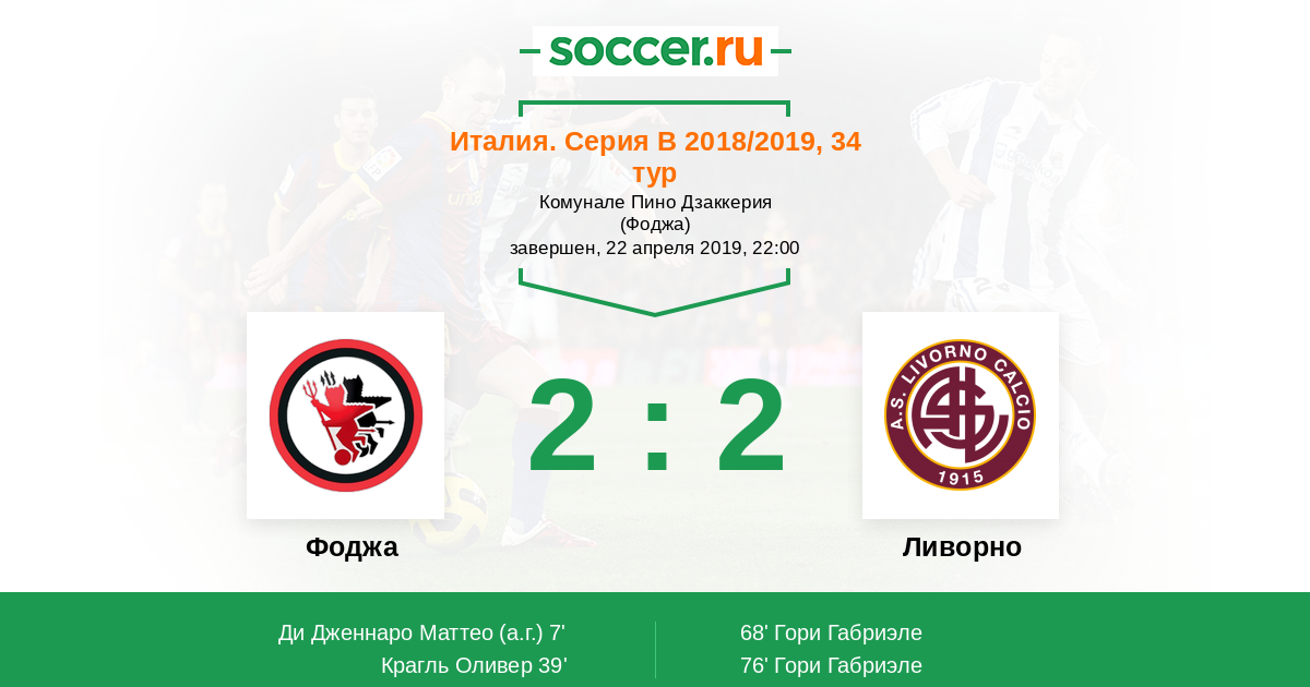 Фоджа - Ливорно: обзор матча 22 апреля 2019