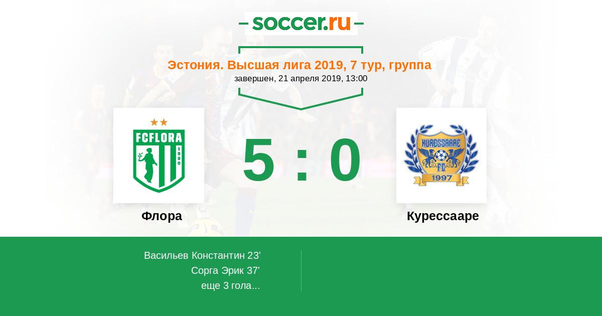 Флора - Курессааре: обзор матча 21 апреля 2019
