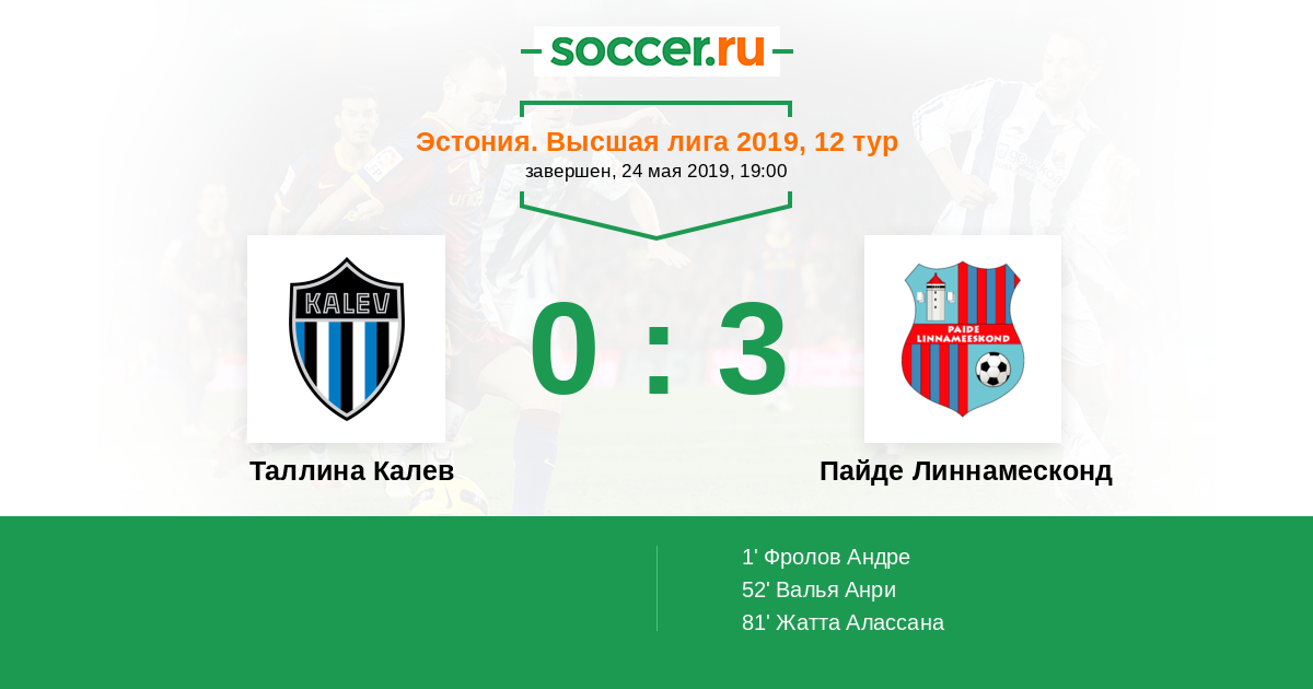 Таллина Калев - Пайде Линнамесконд: обзор матча 24 мая 2019