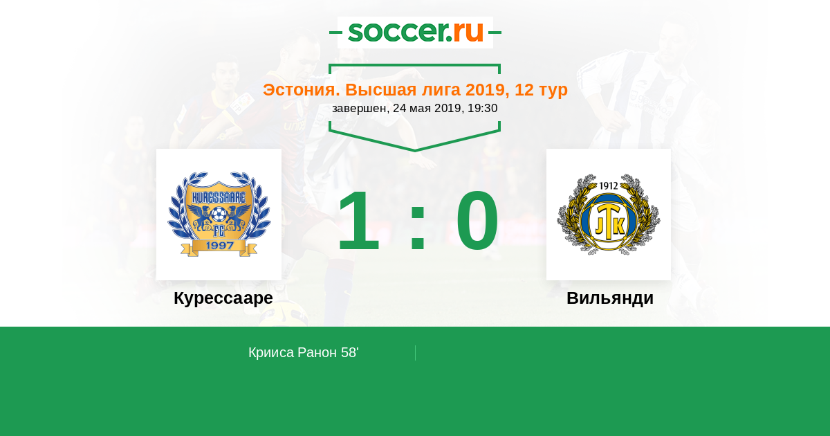 Курессааре - Вильянди: обзор матча 24 мая 2019