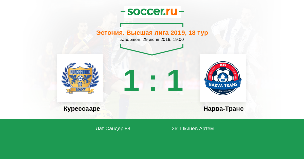 Курессааре - Нарва-Транс: обзор матча 29 июня 2019