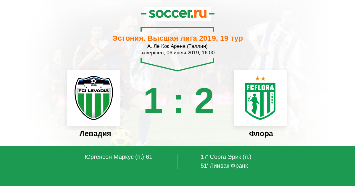 Левадия - Флора: обзор матча 6 июля 2019