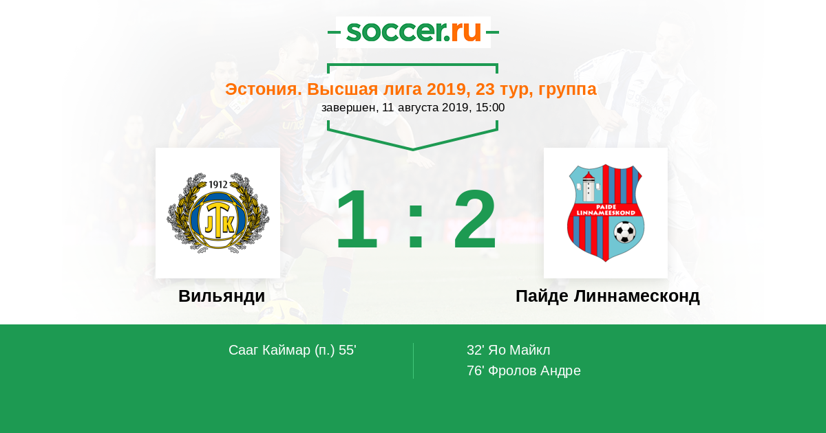 Вильянди - Пайде Линнамесконд: обзор матча 11 августа 2019