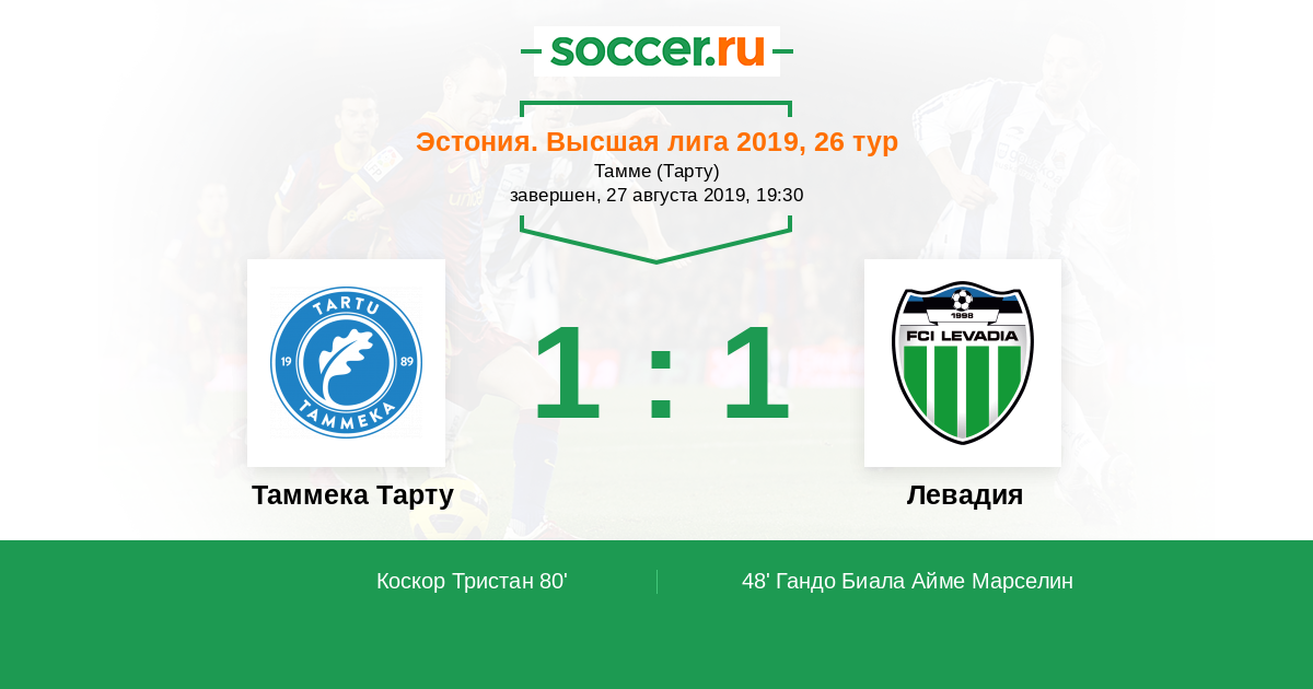 Таммека Тарту - Левадия: обзор матча 27 августа 2019