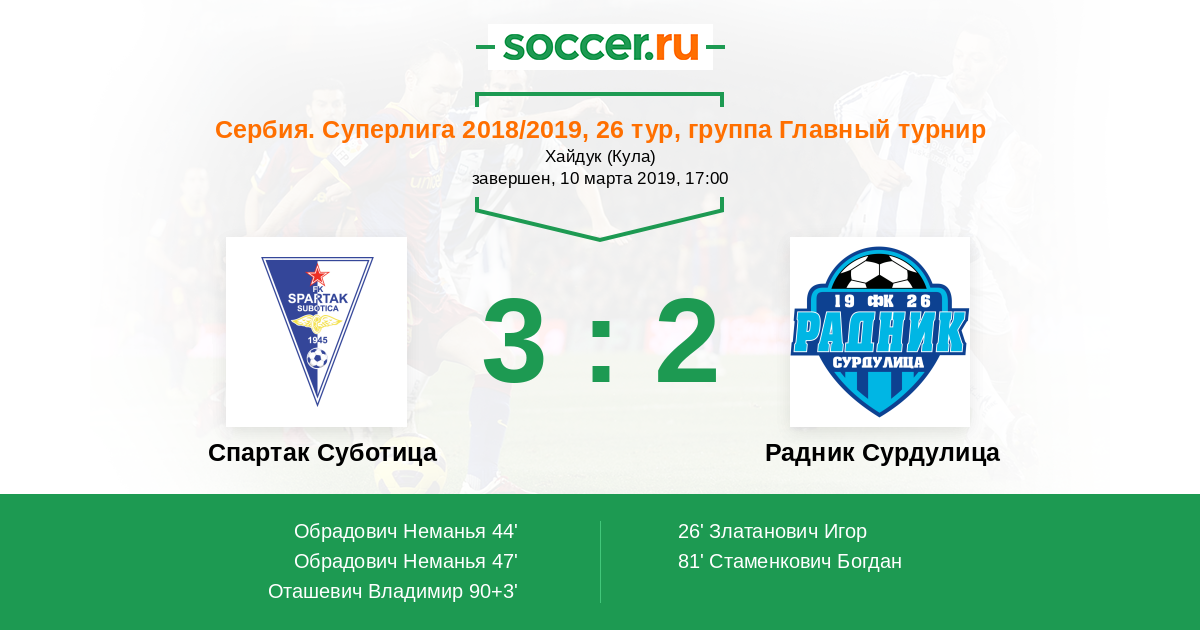 Спартак Суботица - Радник Сурдулица: обзор матча 10 марта 2019