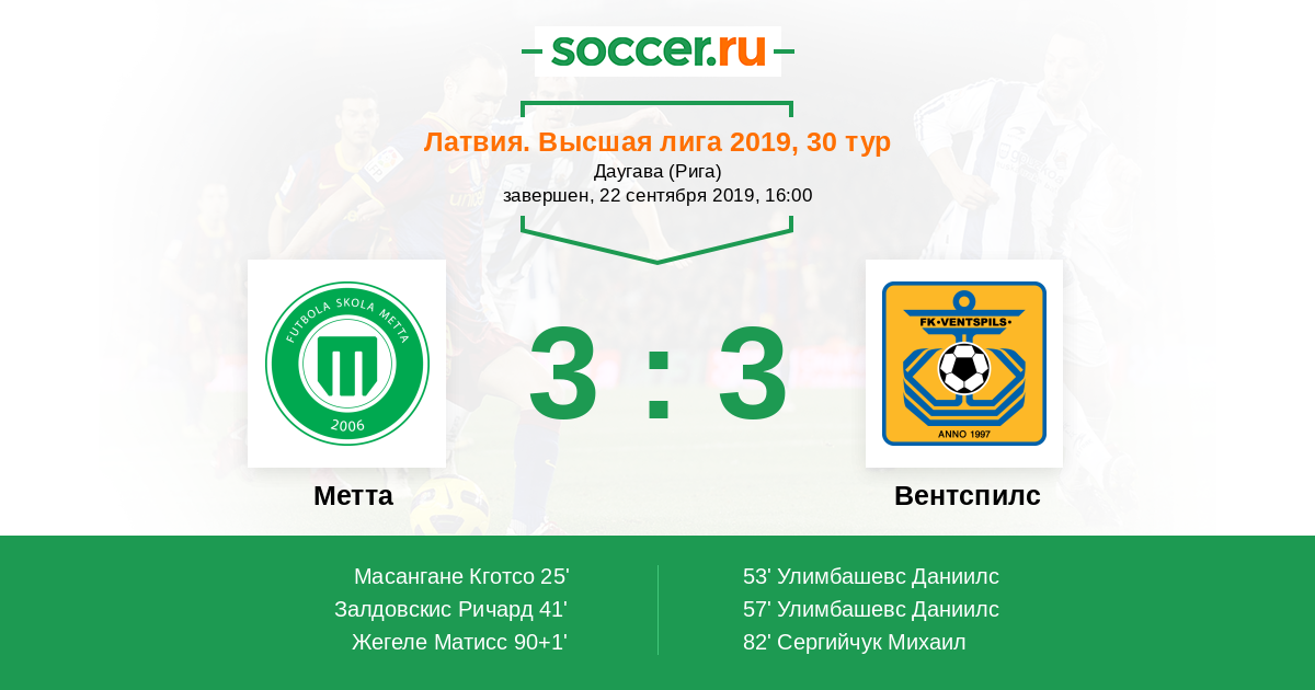 Метта - Вентспилс: обзор матча 22 сентября 2019