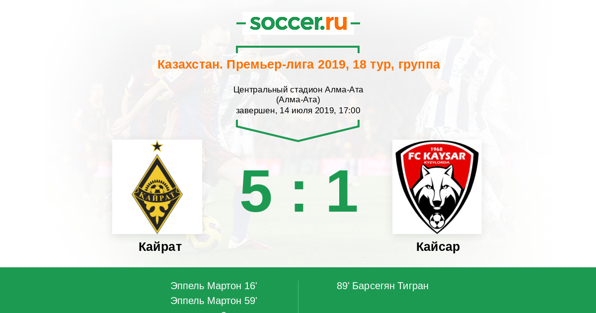 Кайрат - Кайсар: обзор матча 14 июля 2019