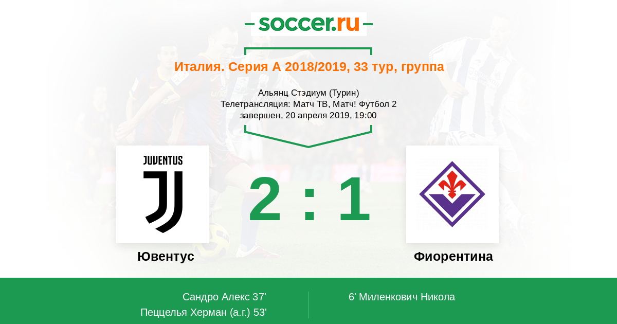 Турин, Альянц Стэдиум Телетрансляция: Матч ТВ, Матч! Футбол 2