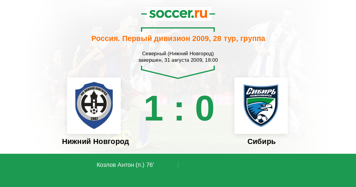 Нижний Новгород - Сибирь: обзор матча 31 августа 2009