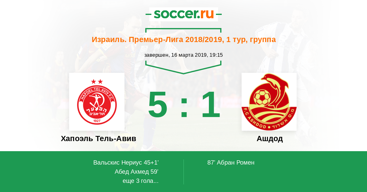 Хапоэль Тель-Авив - Ашдод: обзор матча 16 марта 2019