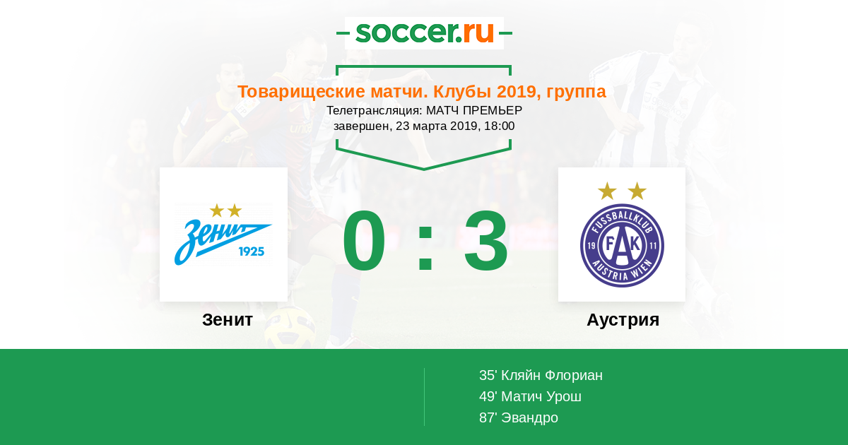 Зенит - Аустрия: обзор матча 23 марта 2019
