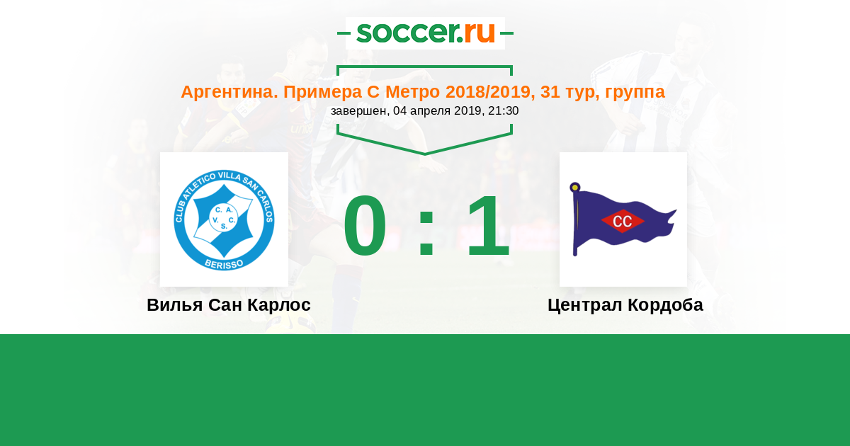 Вилья Сан Карлос - Централ Кордоба: обзор матча 4 апреля 2019