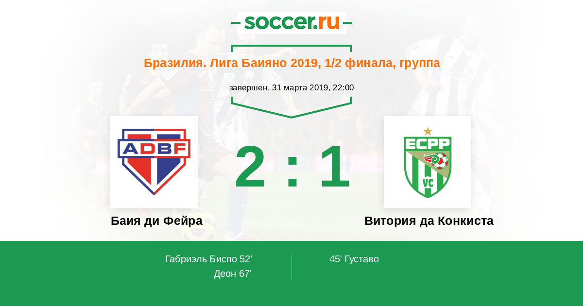 Баия ди Фейра - Витория да Конкиста: обзор матча 31 марта 2019