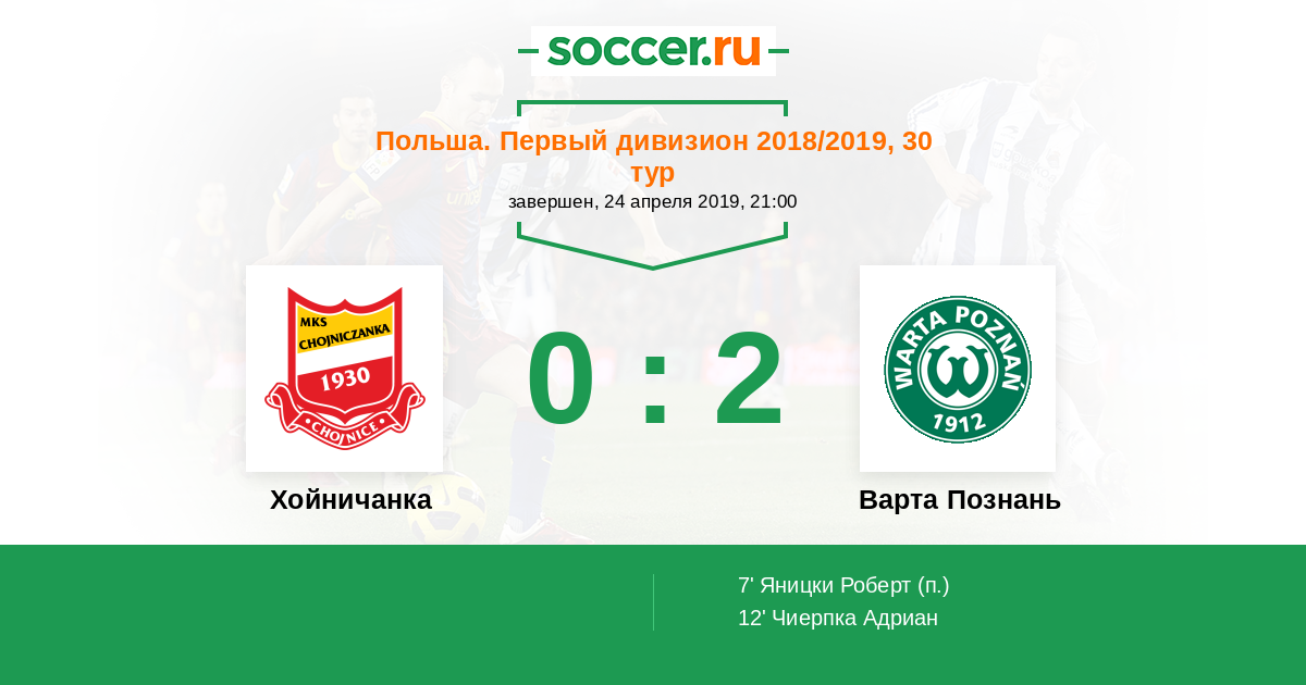 Хойничанка - Варта Познань: обзор матча 24 апреля 2019