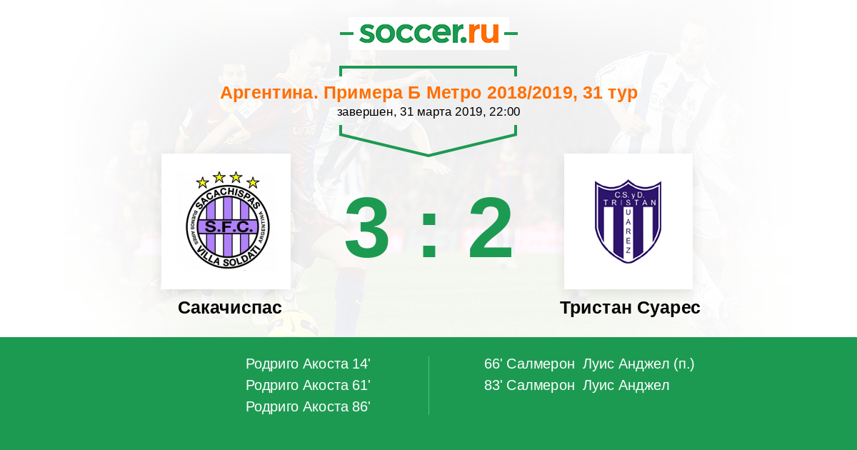 Сакачиспас - Тристан Суарес: обзор матча 31 марта 2019