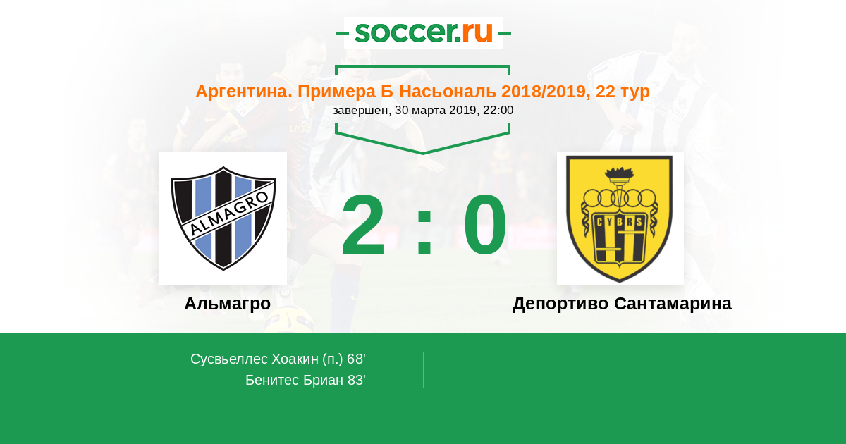 Альмагро - Депортиво Сантамарина: обзор матча 30 марта 2019
