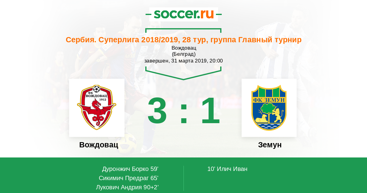 Вождовац - Земун: обзор матча 31 марта 2019