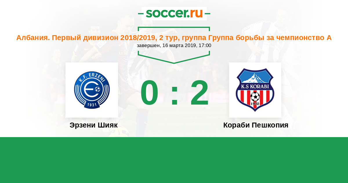 Эрзени Шияк - Кораби Пешкопия: обзор матча 16 марта 2019