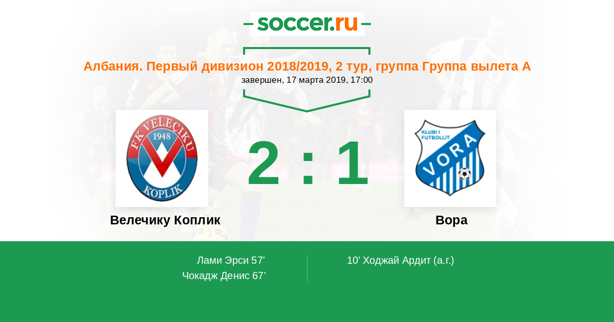 Велечику Коплик - Вора: обзор матча 17 марта 2019