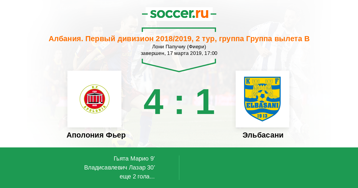 Аполония Фьер - Эльбасани: обзор матча 17 марта 2019