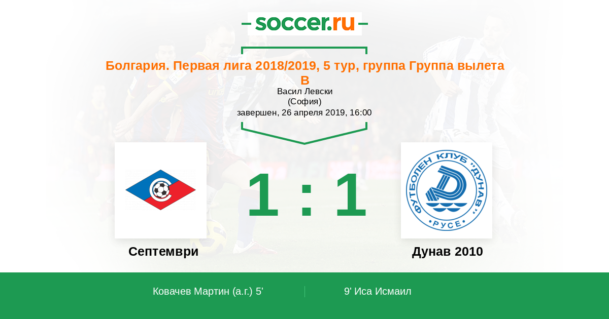 Септември - Дунав 2010: обзор матча 26 апреля 2019