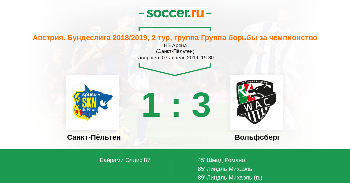 Санкт-Пёльтен - Вольфсберг: обзор матча 7 апреля 2019