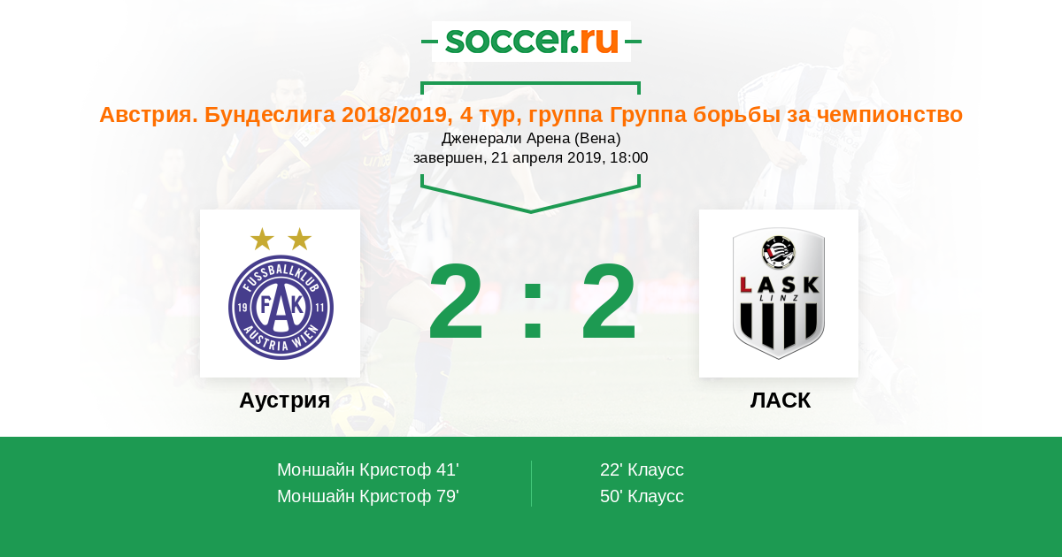 Аустрия - ЛАСК: обзор матча 21 апреля 2019