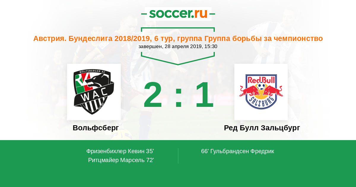 Вольфсберг - Ред Булл Зальцбург: обзор матча 28 апреля 2019