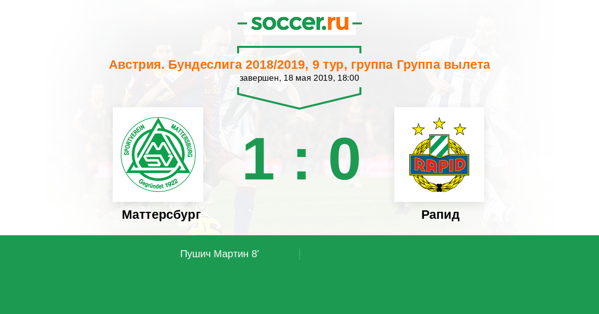 Маттерсбург - Рапид: обзор матча 18 мая 2019