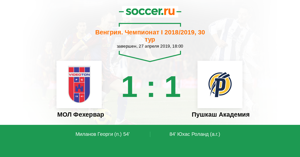 МОЛ Види - Пушкаш Академия: обзор матча 27 апреля 2019