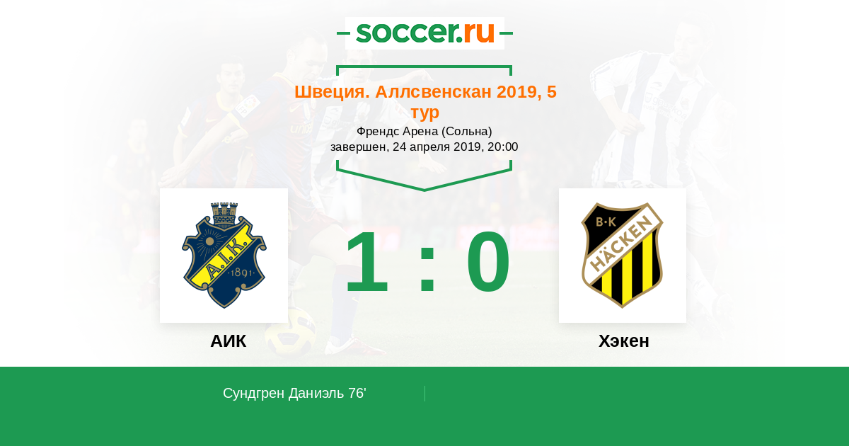 АИК - Хэкен: обзор матча 24 апреля 2019