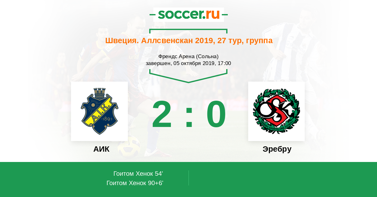АИК - Эребру: обзор матча 5 октября 2019