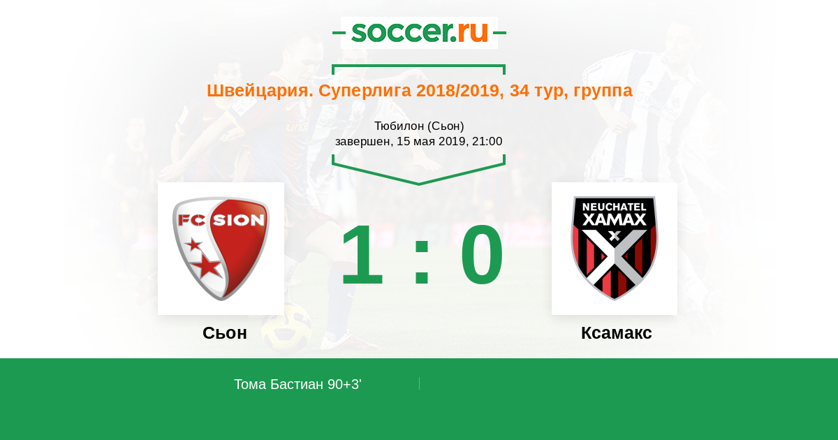 Сьон - Ксамакс: обзор матча 15 мая 2019