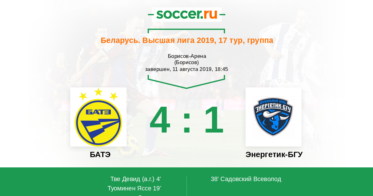 БАТЭ - Энергетик-БГУ: обзор матча 11 августа 2019