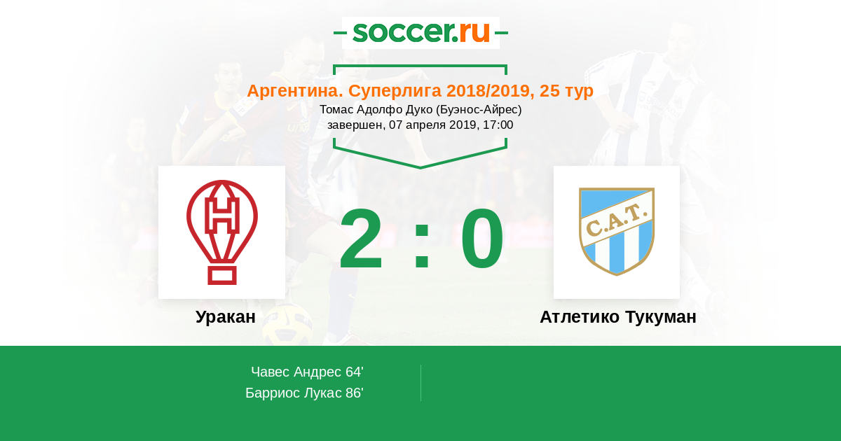 Уракан - Атлетико Тукуман: обзор матча 7 апреля 2019