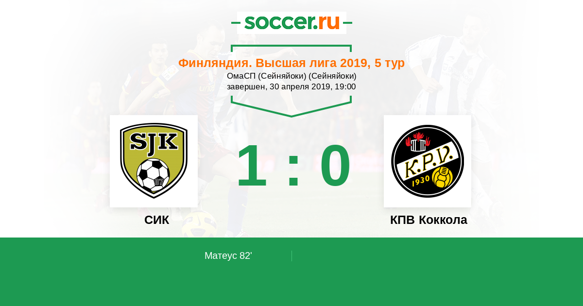 СИК - КПВ Коккола: обзор матча 30 апреля 2019