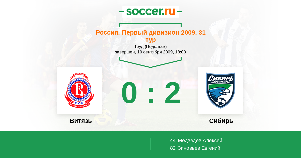 Витязь - Сибирь: обзор матча 19 сентября 2009